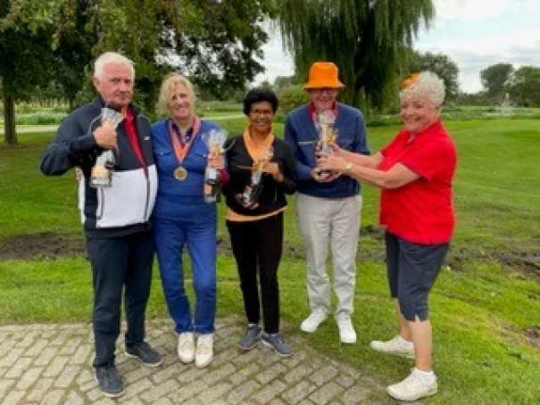 Derde plaats:Team Carla Arkesteijn, Nia van Tilburg, Lannie Kempers, Piet van Bokkum. Totale score van de beste drie Stb-scores per hole: 112.