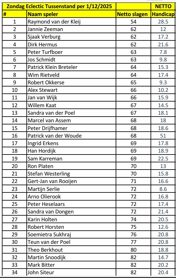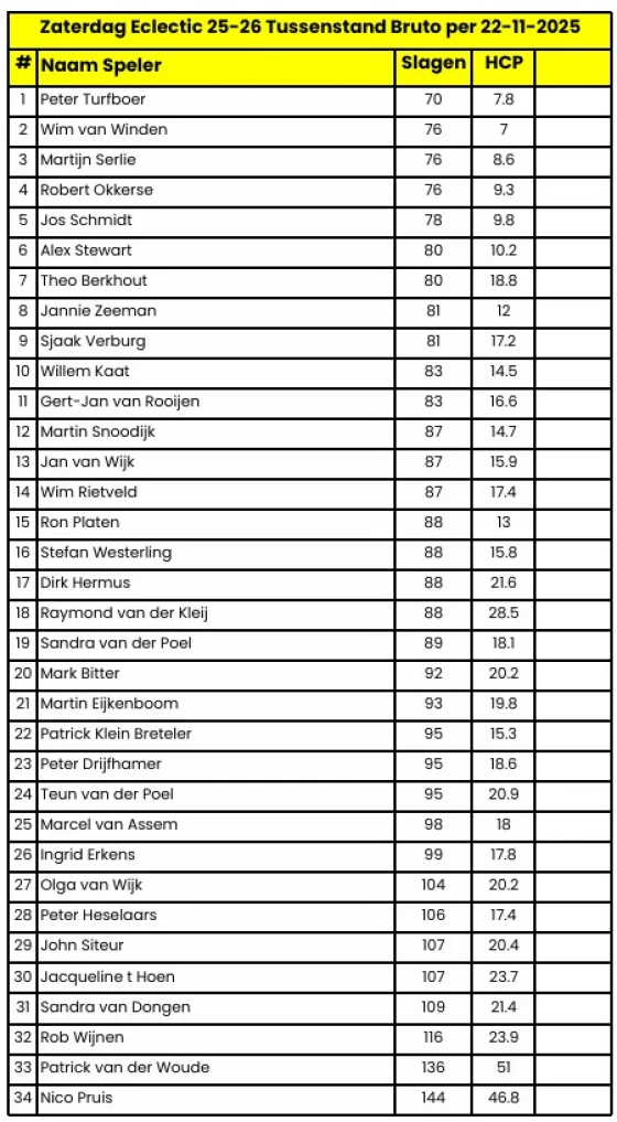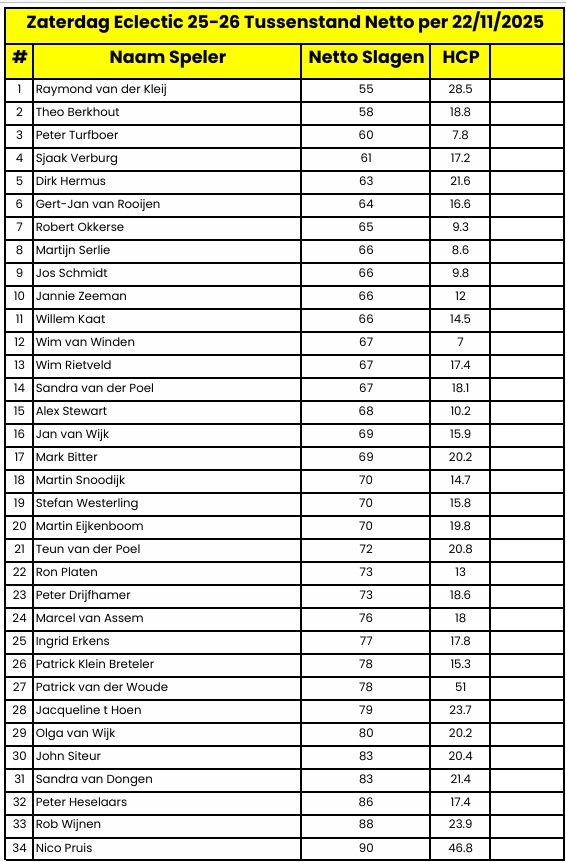 Het Zaterdag Klassement Netto: