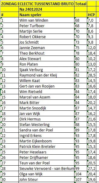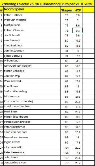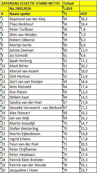 Het Zaterdag Klassement Netto: top-30