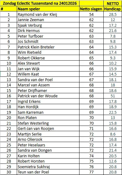 Het Zondag klassement Netto: top-30