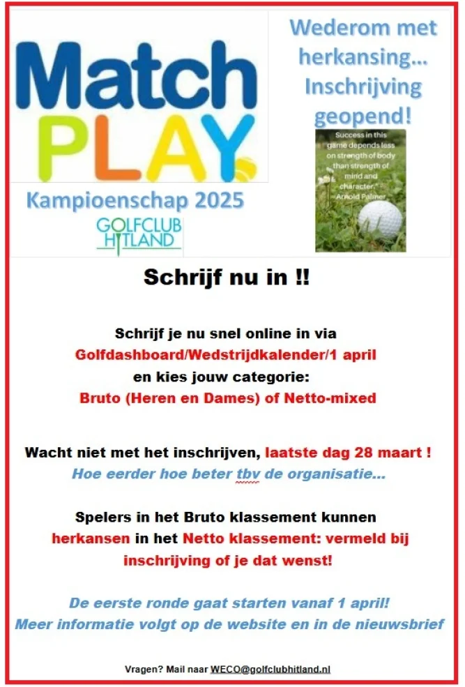 Matchplay kampioenschap 2025: inschrijving geopend!