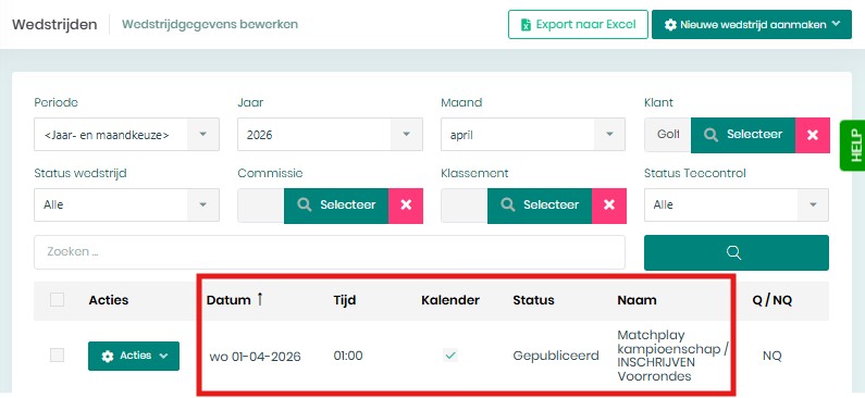 Je schrijft in op de volgende wedstrijd, in jouw categorie: