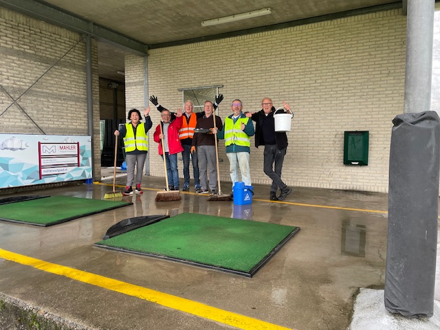 De Handjes-bij waren weer actief op 8 december en wel op de Driving Range. De matten werden grondig schoongeveegd en de hele vloer werd gesopt. Een ander gezicht!