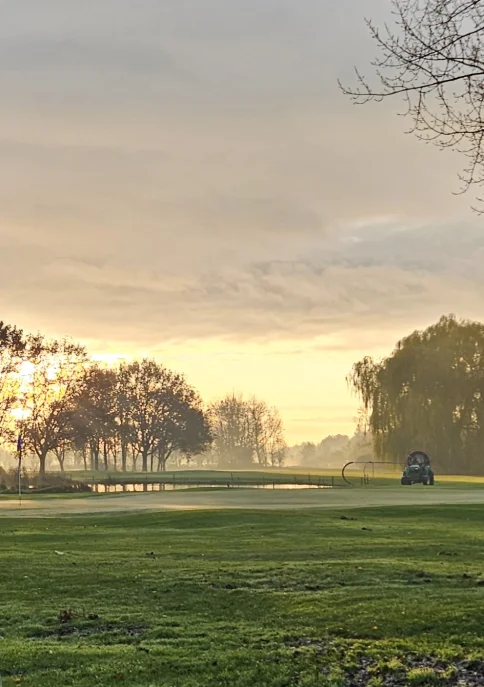 Als je vroeg opstaat en je bij onze mooie baan midden in de polder aankomt, is de kans groot dat je in een heel andere wereld belandt. De natuur wordt wakker en de enige bewegingen die je ziet zijn van vogels, hazen en een greenkeeper. Die is ook vroeg uit zijn bed gekropen om de baan nog mooier maken voor de golfers die nog slapen. Je ziet dan de nevel optrekken en een glimp van de zon die net boven de horizon komt. Een onvergetelijk mooi schilderij dat je gratis krijgt als compensatie voor je moeite.