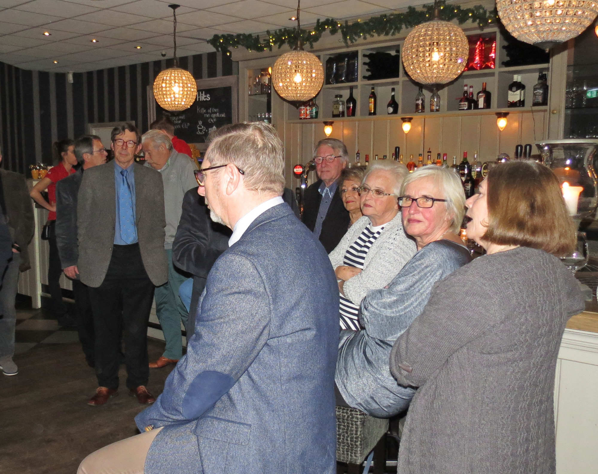 Op de lijst aangemelde deelnemers slonk het aantal van 59 naar 40. Niettemin werd de eindejaarsbijeenkomst in restaurant HIT een heel gezellige aflevering. De thuisblijvers hebben ongelijk gehad.