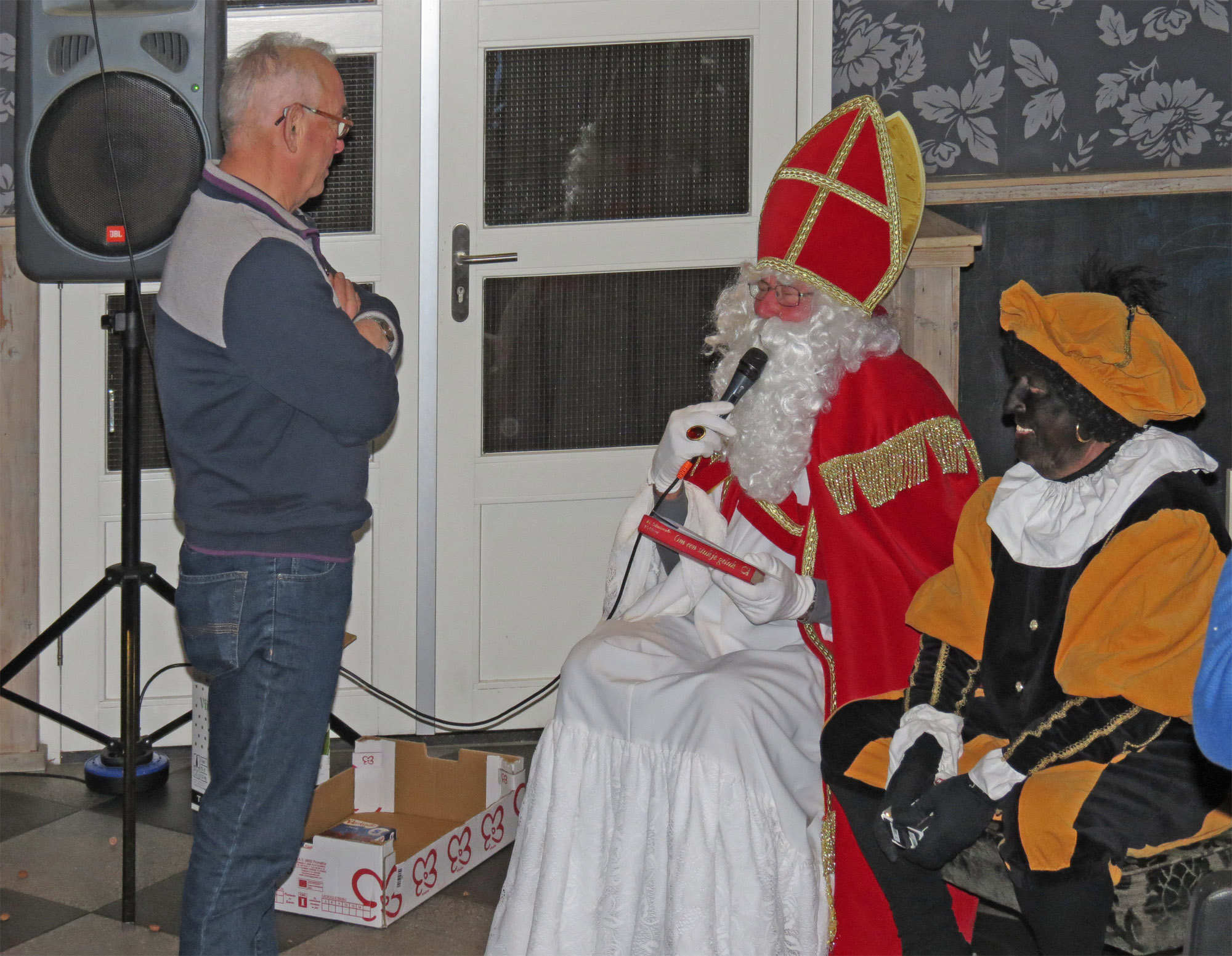 Het bezoek verliep in feestelijke en gezellige sfeer. Van het vooraf zingen van sinterklaasliederen is weer helemaal niets terecht gekomen. De compensatie via een liedjes-CD is natuurlijk een magere vertoning - deze keer deed Sinterklaas er gelukkig het zwijgen toe. Vervolgens riep Sint diverse leden bij zich om een stichtelijke raad mee te geven, dan wel om na te praten over vermakelijke gebeurtenissen. De persoon die 2x (zegge twee maal) een elektrische trolley in de sloot liet verdwijnen was veiligheidshalve thuisgebleven.