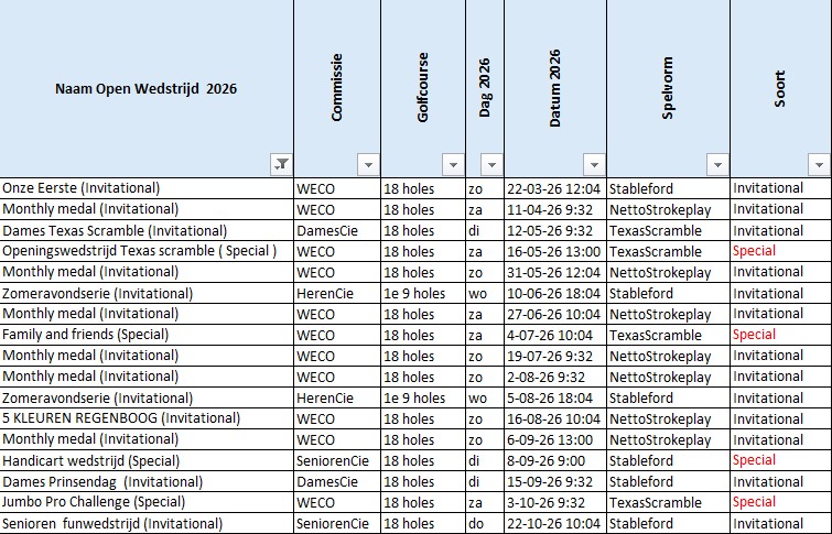 Dat zijn clubwedstrijden met een aantal plaatsen voor gasten van buiten de Golfclub.