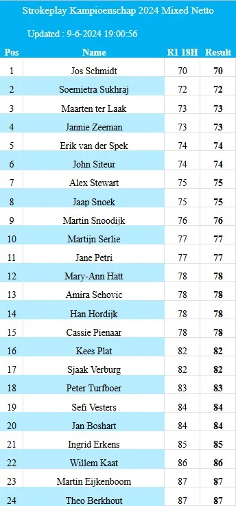 Tussenstanden Strokeplay kampioenschap 2024