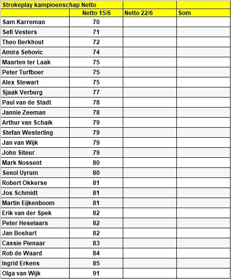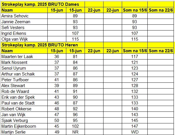 Tussenstanden Strokeplay kampioenschap 2025