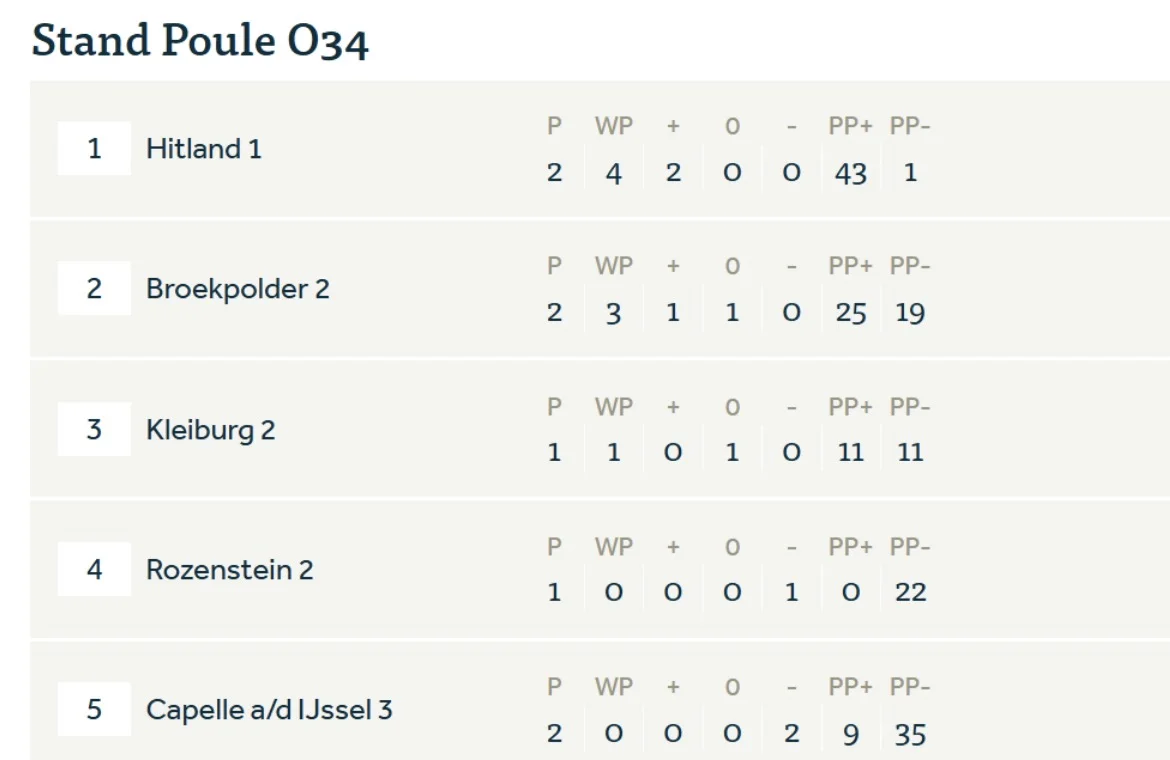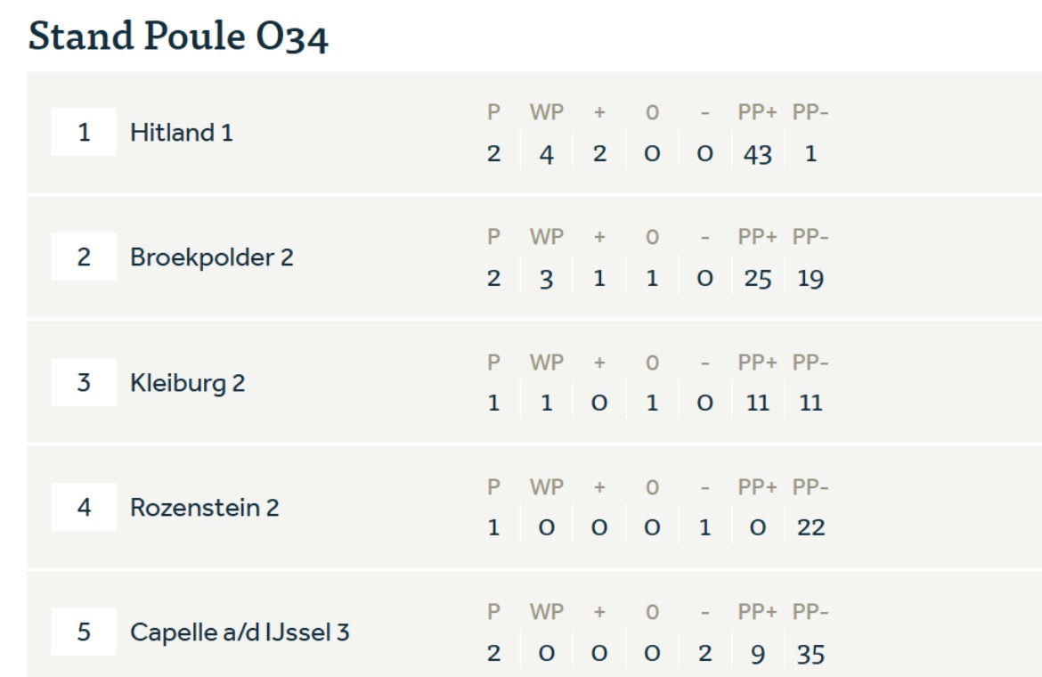 De drie greensomeswerden daarna ook redelijk eenvoudig gewonnen. Halverwege de competitie staan we dik bovenaan, maar het lijkt erop dat we de zwakste tegenstanders nu gehad hebben. De komende week zijn wij gastheer. In de twee weken daarna moeten we nog aan de bak om het kampioenschap en de promotie naar de 1e klasse te bewerkstelligen.