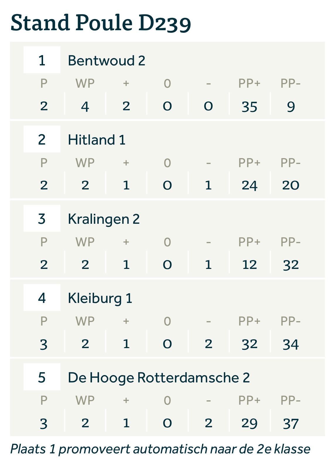 Inmiddels zijn we drie weken bezig met de zondag competitie in poule D239.  De eerste (zonnige) competitiedag werd er op Hitland gespeeld en mochten wij als eerste de andere teams verwelkomen. De baan lag er top bij. De sfeer was goed en de eerste punten werden gescoord, en met name Bentwoud scoorde hoog 20-2!