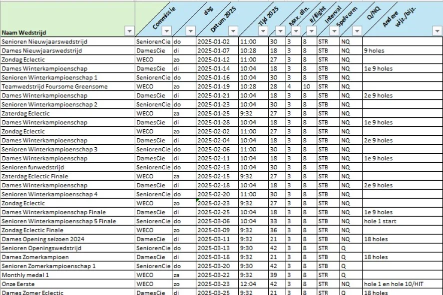 De wedstrijden van januari t/m maart staan al in je Golfdashboard en zijn 2 maanden voor aanvang geopend voor inschrijving!