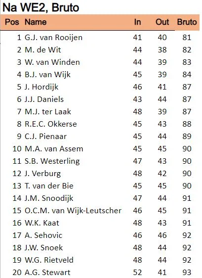 De tussenstanden, ja, nu al! Hieronder de (voorlopig) beste 20, bruto en netto: