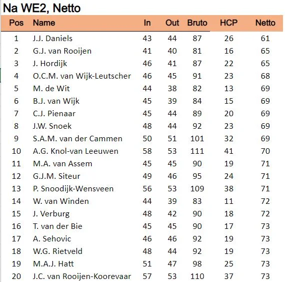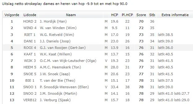 De Daguitslag Netto (Top -10): met een mooie score 70 van Han Hordijk!