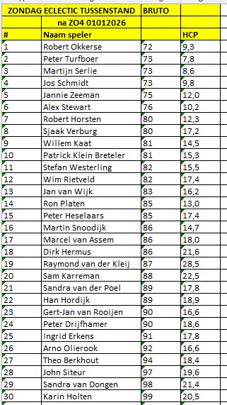 In het Bruto klassement is het "close": in de nummers 1 t/m 3 kan het nog gaan schuiven: met slechts 1 slag verschil tussen de nummers 1 en 2/3/4 wordt het reuze spannend op 1 maart...