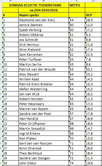 Netto tussenstand (top-30):
